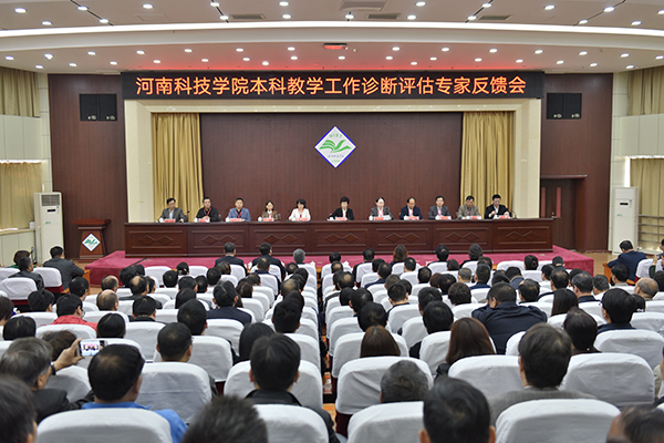 10月19日下午,我校在行政楼三楼多功能报告厅举行本科教学工作诊断评估专家反馈会。专家组组长、青岛大学原副校长邵峰晶教授,副组长、河南农业大学原副校长张全国教授,诊断评估项目管理员、河南省教育评估中心副主任张新民和全体专家组成员及校领导周志远、李成伟、宋亚伟、冯启高、何松林、王霞、贾积身出席会议。全校处级干部,二级学院教学秘书、系主任,部分教研室主任、实验室主任代表、教师代表,评估办全体工作人员等参加了反馈会。反馈会由审核评估专家组副组长张全国主持。