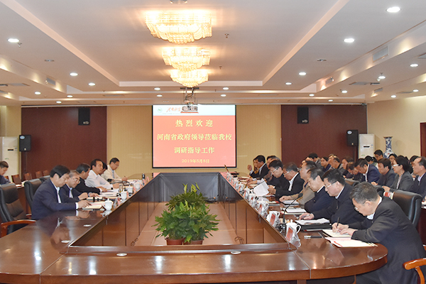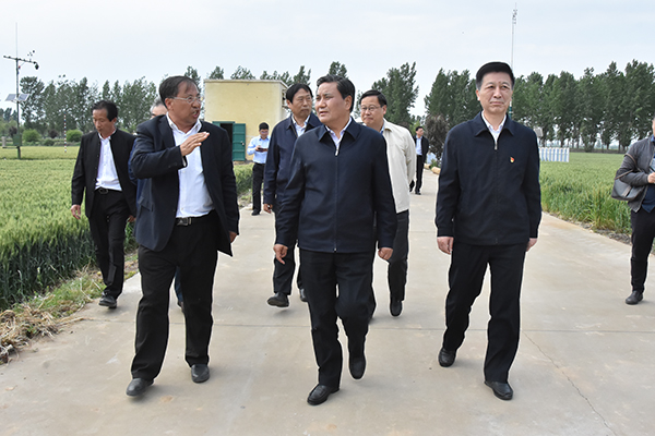 5月8日下午,副省长武国定莅临我校调研生物育种工作。省政府副秘书长朱良才、省农业科学院院长张新友、省教育厅副厅长刁玉华、省农业农村厅总农艺师王俊忠、新乡市人民政府副市长武胜军,全体在校校领导陪同调研。省、市政府相关工作人员和我校相关单位负责人、涉农学院院长、部分专家教授和教师代表参加调研座谈。