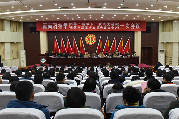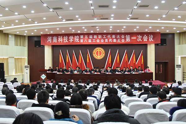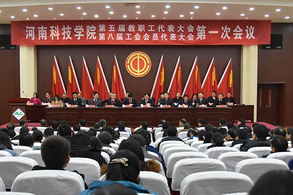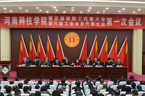 12月28日,我校第五届教职工暨第八届工会会员代表大会第一次会议在办公楼308会议室召开。河南省总工会副主席杨会卿,省教科文卫体工会主席符明轩、副主席王学全,新乡市人大常委会副主任、总工会主席张桂香,新乡医学院工会主席邵金远,河南工学院党委副书记、工会主席李贵敏及我校全体在校校领导,河南师范大学、新乡学院等兄弟院校工会负责人出席会议。