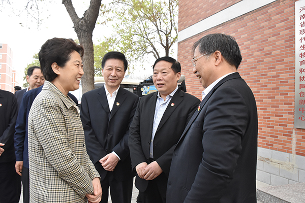 喻红秋指出,小麦品种要与面粉企业对接,加快科技成果转化,促进产业化发展,推动增加社会经济效益。她勉励茹振钢等科技工作者,要认真贯彻落实习近平总书记的指示精神,培育更多的优良品种,扛稳粮食安全重任,为老百姓增产增收和国家粮食安全多作贡献;希望河南科技学院努力建设一流学科,争取更大的发展。