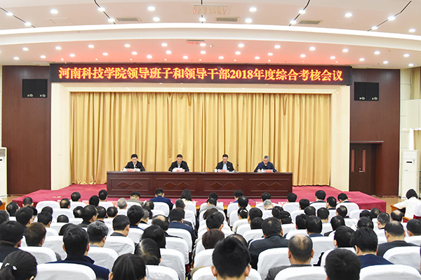 3月27日上午,我校在办公楼三楼多功能报告厅召开校级领导班子和领导干部2018年度综合考核会议。省管高校领导班子和省管干部2018年度综合考核第六考核组组长、郑州轻工业大学原党委书记石恒真,副组长、省委组织部副处长郭春生,考核组成员闫福丰、杨毅、悦国宁、杨阳、水付新、王鹏举、杨韬等出席会议。校级干部,党委委员,纪委委员,学校中层正职,省级以上党代表、人大代表、政协委员,省辖市以上民主党派负责人,教师和学生代表参加会议。