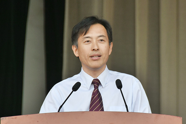 校长李成伟在讲话中对来自全国各地的8502名新同学表示了热烈欢迎,对长期培养他们的父母和基础教育阶段的母校表示感谢。他从“这是一所真大学”和“在这里请你真成长”两个方面为2018级新生开讲大学第一课。