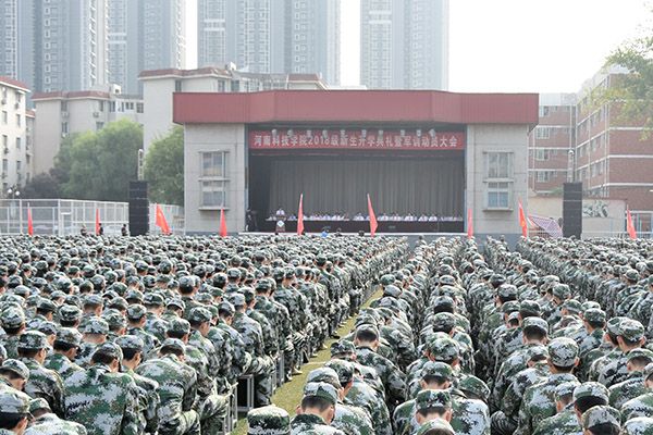 在高昂的校歌声中,2018级新生开学典礼暨军训动员大会圆满结束。