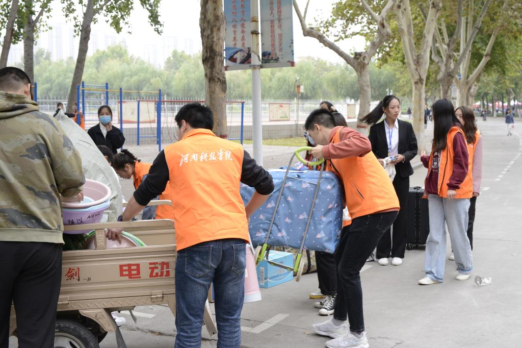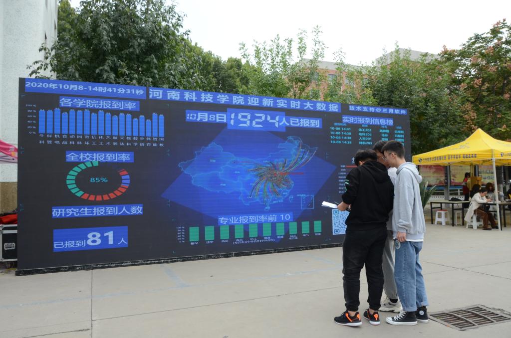 为保障迎新工作安全、高效、有序开展,学校在致远广场通过迎新实时大数据屏幕清晰展示新生报到情况;西大门外设置医疗处置点,为师生安全提供保障;在火车站设置了迎新接待点,安排车辆直达校区接送新生,提供细致入微的迎新服务;学生志愿者热情的为新生搬运行李、答疑解惑、指引方向;满载行李的爱心电瓶车、三轮车一趟趟将完成报到手续的新生送到学生公寓,为新生们提供了极大的便利;各学院也别出心裁地在迎接新生们的工作中展示着特色和亮点。