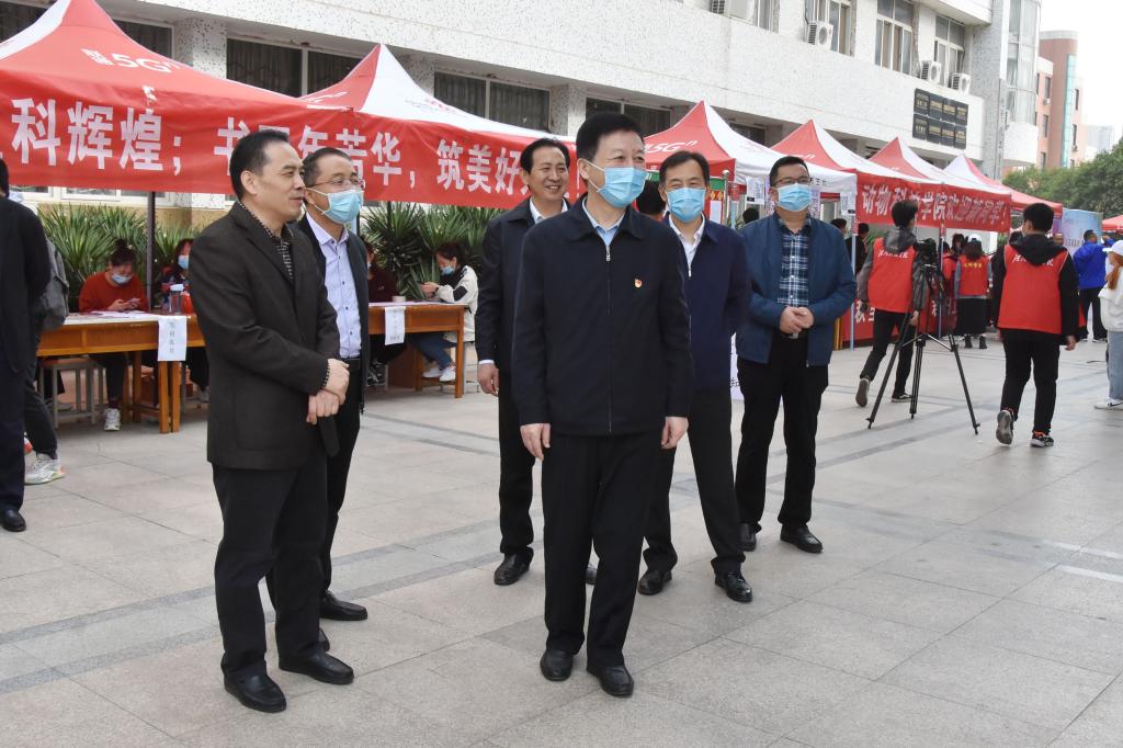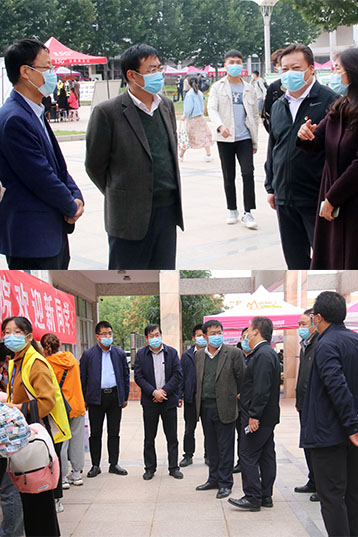 10月8日上午,我校喜迎2020级新生各项工作有条不紊地进行。9时许,全体在校校领导深入迎新现场检查指导迎新工作,看望2020级新生,慰问迎新一线的工作人员和学生志愿者。
