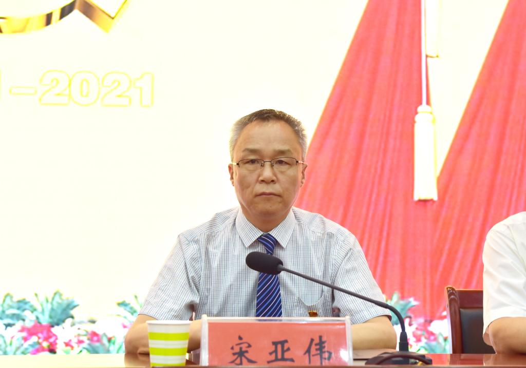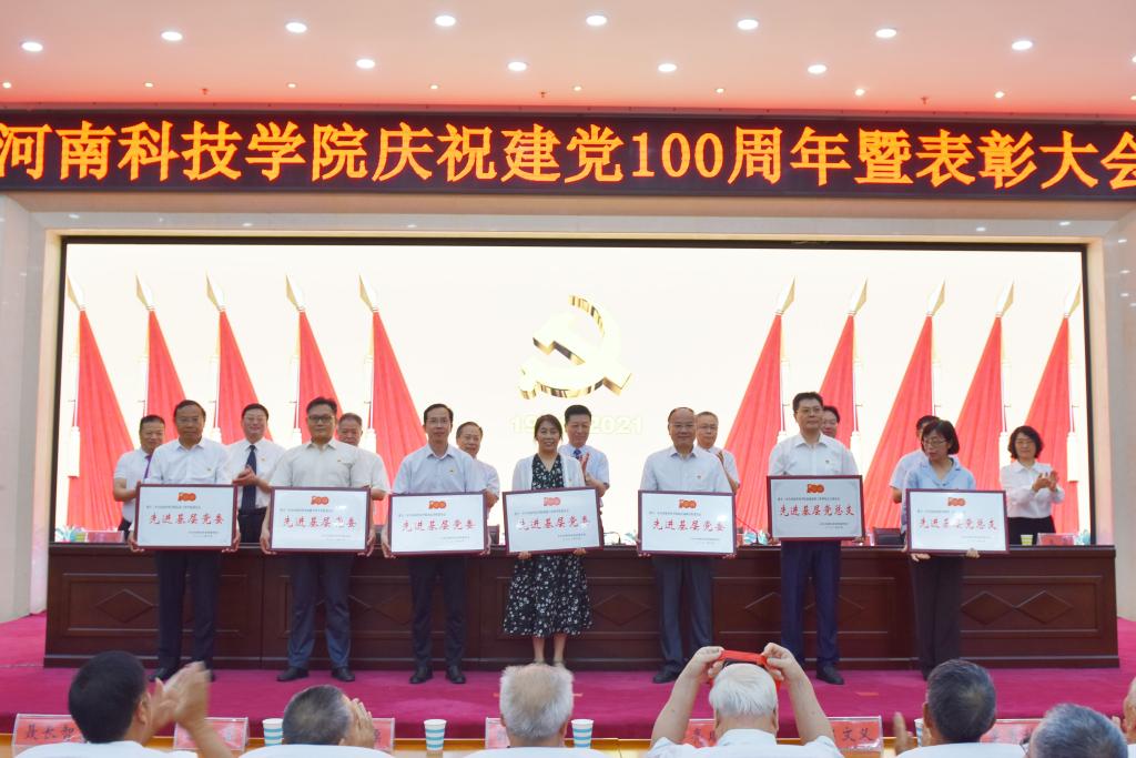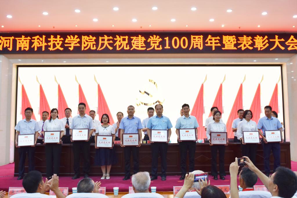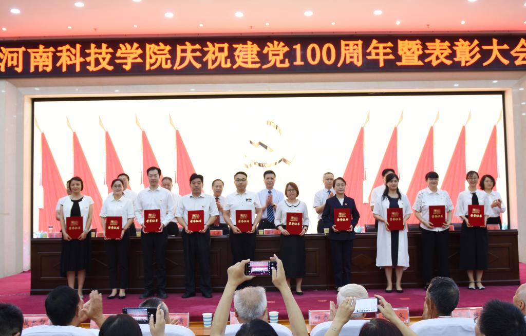 校党委副书记苗双虎宣读“光荣在党50年”党员名单、荣获河南省先进基层党组织和河南省高校先进基层党组织、先进个人名单以及我校关于表彰2020—2021学年先进基层党组织、优秀共产党员和优秀党务工作者的决定。全校共有41名老党员荣获“光荣在党50年”纪念章,1个基层党委荣获河南省先进基层党组织,4个基层党委荣获河南省高校先进基层党组织,5名同志荣获河南省高校优秀共产党员,2名同志荣获河南省高校优秀党务工作者;7个基层党委(党总支)、34个党支部、105名共产党员和18名党务工作者荣获我校2020—2021学年先进基层党组织和先进个人荣誉称号。