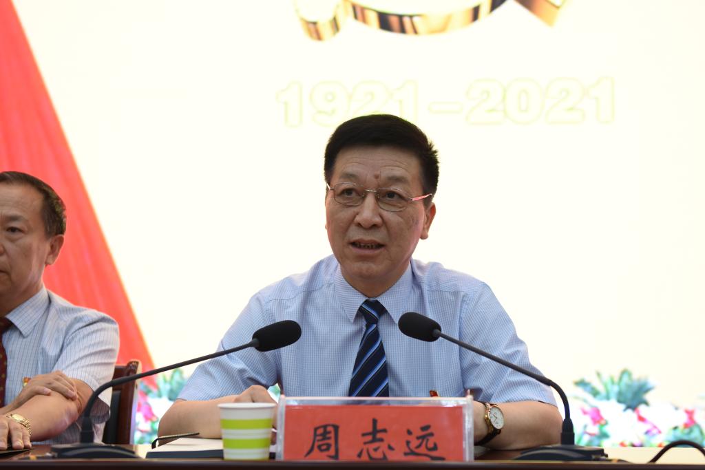 周志远在讲话中强调,党100年的光辉历程,既是不断发展壮大的成长史,也是探索救国图强的奋斗史;既是开辟兴国道路的变革史,也是实现富国强国的光辉史。在党的坚强领导下,学校始终与祖国同呼吸、共命运,始终不忘立德树人初心、牢记为党育人、为国育才使命,不断书写教育报国的历史篇章。