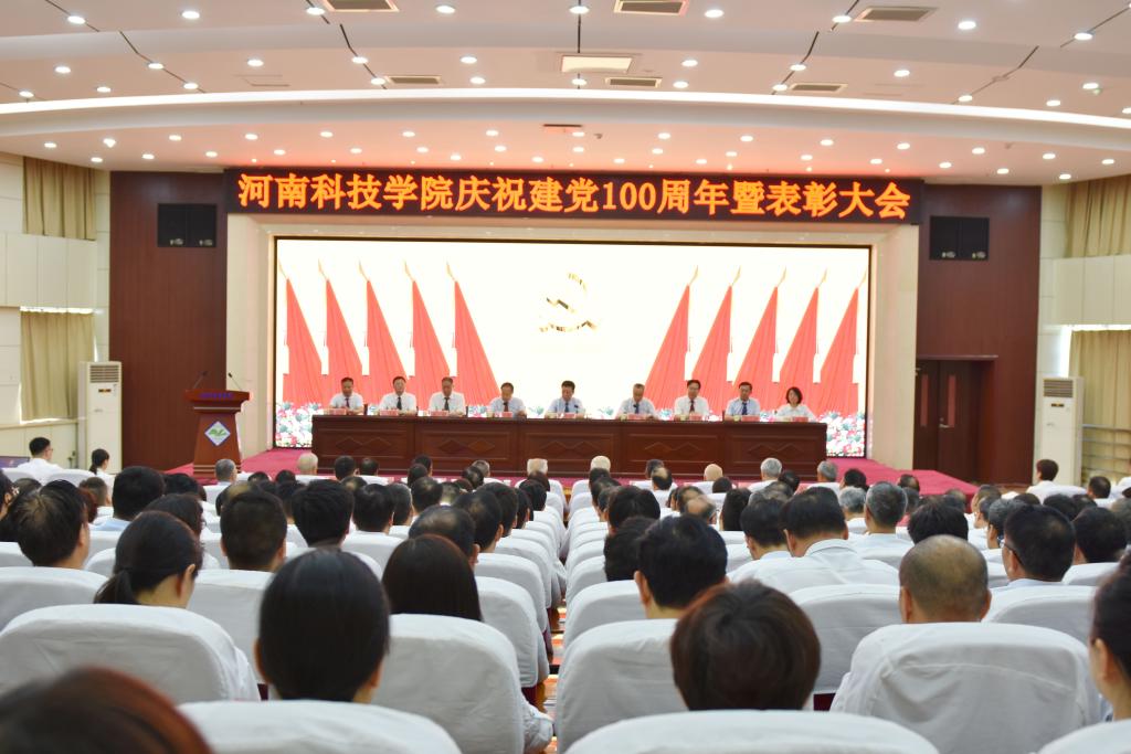 6月29日下午,我校庆祝建党100周年暨表彰大会在行政楼三楼多功能报告厅召开。校领导出席会议。我校“光荣在党50年”老党员代表,受表彰的先进党组织和先进个人,党员处级干部、党支部书记及师生党员代表近300人参加会议。