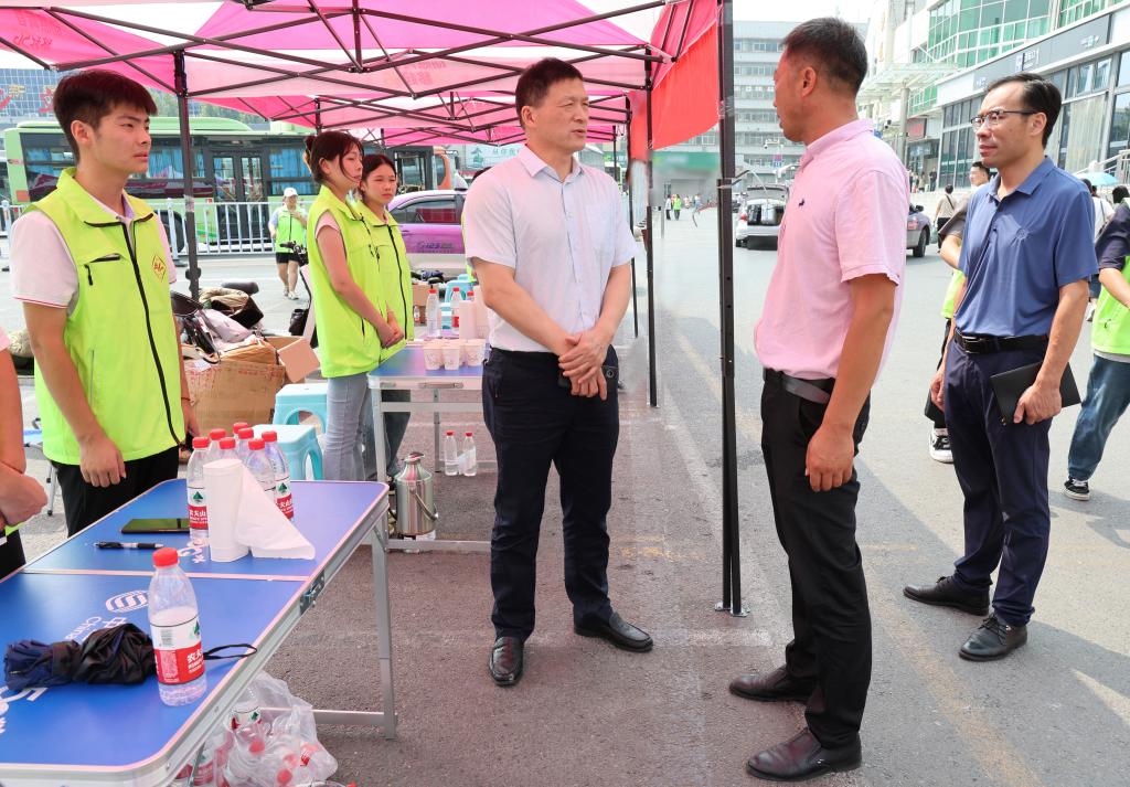 校党委副书记、工会主席姚刚在火车站迎新点指导工作