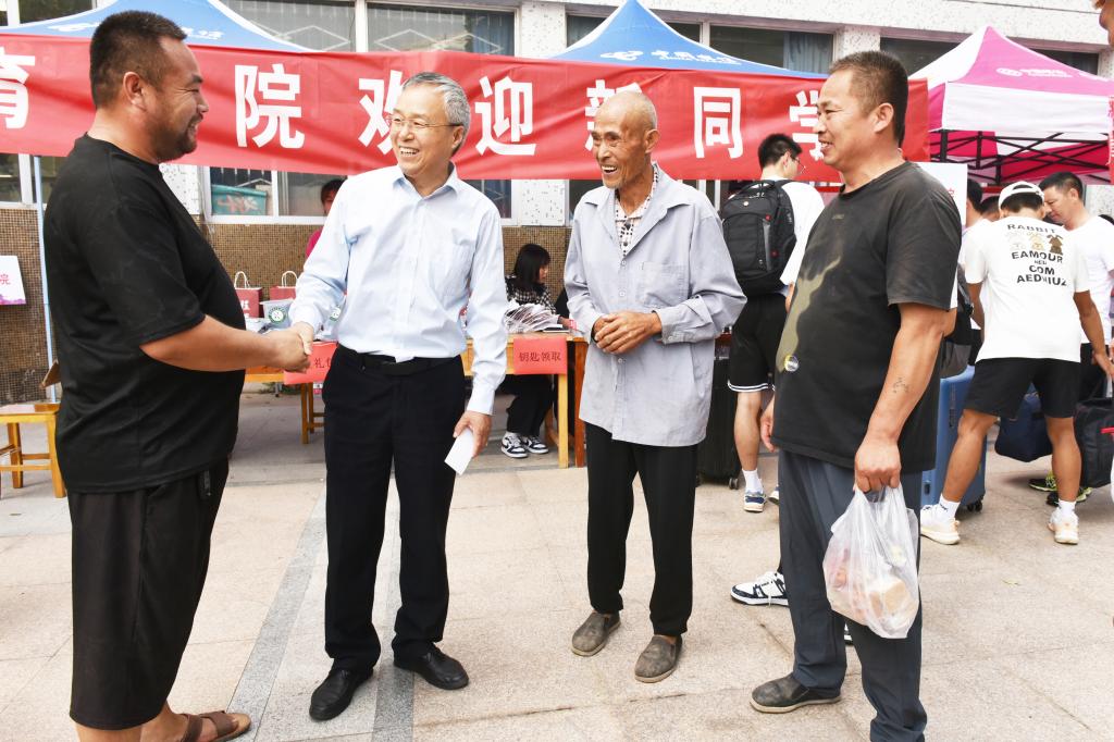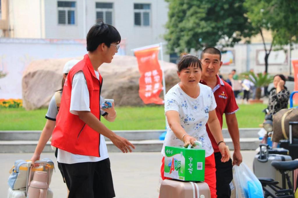 温馨的标语、舒展的彩旗、醒目的打卡点,整个校园喜气洋洋、生机勃勃。全体在校校领导宋亚伟、何松林、姚刚、冯启高、贺杰、王霞在相关部门负责人的陪同下,深入到迎新现场指导工作。校领导们分别来到校门安保处、绿色通道处、家长休息区、迎新接待处等了解迎新工作进展,对志愿者们和工作人员的辛勤付出表示慰问和感谢,并嘱咐他们全力以赴、密切配合,为新生报到提供周到贴心的服务。在每个学院的新生报到点,校领导都详细询问了新生报到情况、手续办理程序等,并和新生及家长亲切交流,介绍学校基本情况,表示将用心培养好、照顾好每一位学生,请家长放心,同时希望新同学尽快熟悉校园环境,融入校园生活。校领导姚刚、王霞分别到火车站、高铁站等迎新点看望慰问工作人员,深入了解迎新点现场情况。