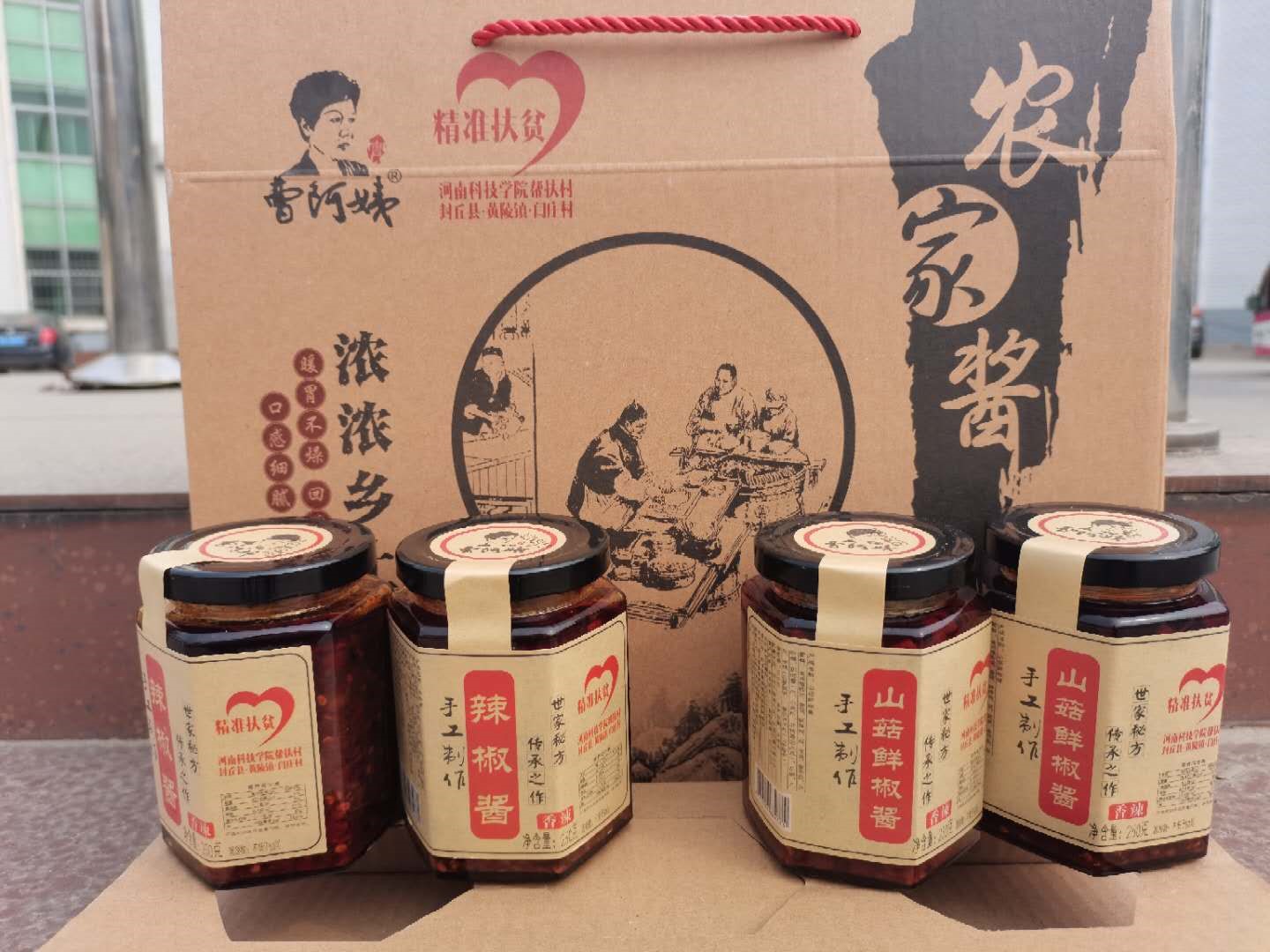 今年是国家全面建成小康社会和打赢脱贫攻坚收官之年。为进一步贯彻落实《国务院办公厅关于深入开展消费扶贫助力打赢脱贫攻坚战的指导意见》精神,2020年,我校派驻封丘县黄陵镇闫庄村的驻村工作人员克服新冠疫情影响,带领贫困群众种植优等朝天椒60余亩,目前,新采摘的朝天椒已深加工成辣椒酱和山菇鲜椒酱,两个产品均为纯手工炒制,香辣纯正,味道可口。这是我校驻村工作的一项重要成果,也是我校助力精准扶贫的一项切实措施。