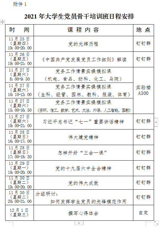 1、本次培训班是针对学生党员骨干组织的专题培训和学习交流,是进一步加强学生党支部建设的重要举措,请各学院党委、党总支高度重视。