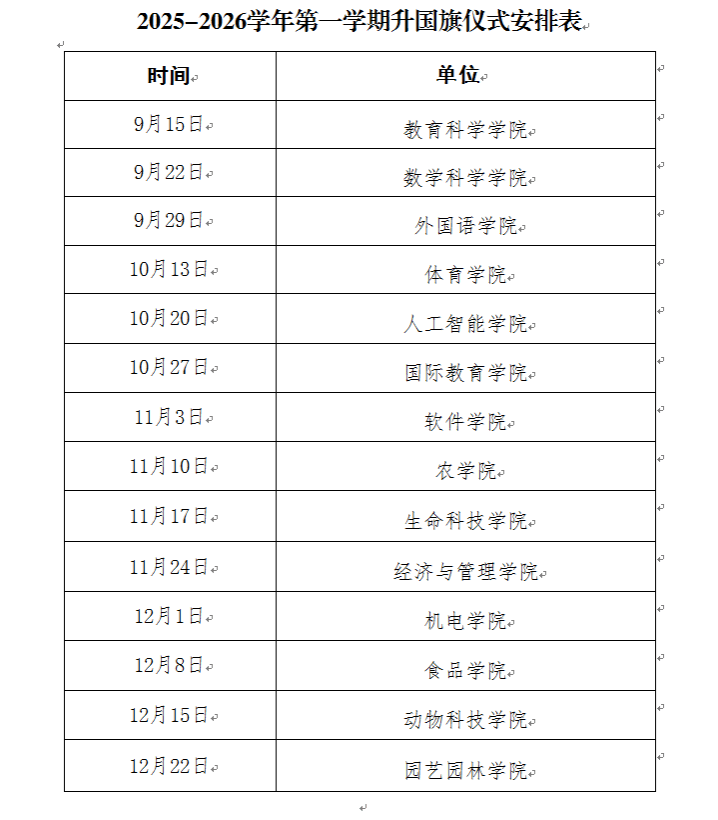 2.请各学院根据统一安排(见附件),组织本学院在校学生(含本科生和研究生)参加升旗仪式。