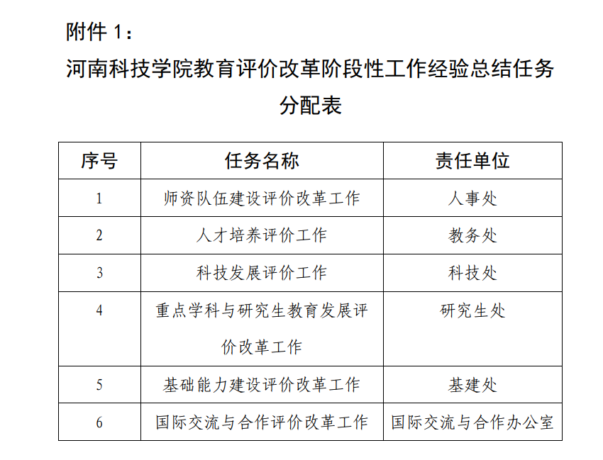 附件1:河南科技学院教育评价改革阶段性工作经验总结任务分配表