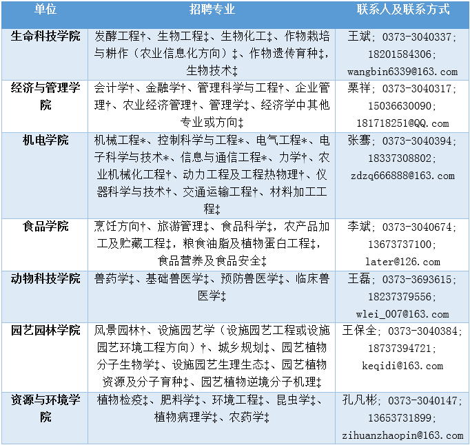 注:"*"为特别紧缺,"†"为一类紧缺,"‡"为二类紧缺;每学院招聘5-8人。