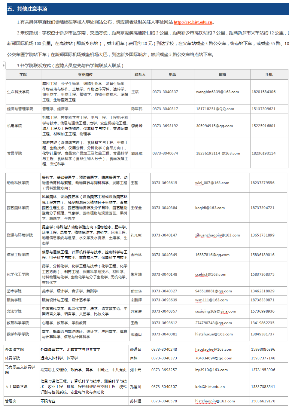 (一)应聘人员应先与各学院联系人联系,下载并填写报名表(见附件),将应聘简历等材料发送至学院联系人邮箱(邮件主题注明:学历、专业)。