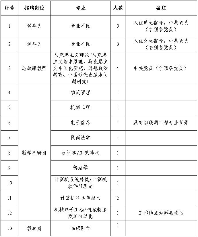 7.序号4-12号岗位,入职后须从事辅导员工作两年;