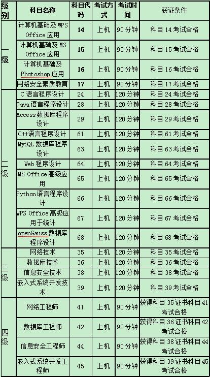 2023年上半年全国计算机等级考试的报名时间定于2023-02-23 09:00 至 2023-03-03 17:00进行。所有级别的考试均为上机考试。一级、四级考试时间为90分钟,二级、三级考试时间为120分钟。