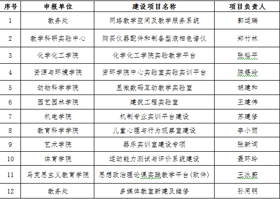 2015年立项的教学仪器等重大项目,共计12项。具体项目见附表。