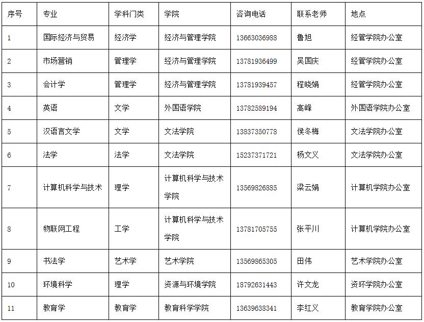 经河南省教育厅批准,我校目前开设的双学位教育专业共有十一个:国际经济与贸易、市场营销、会计学、英语、汉语言文学、法学、计算机科学与技术、物联网工程、书法学、环境科学和教育学。各学院有关信息见下表。