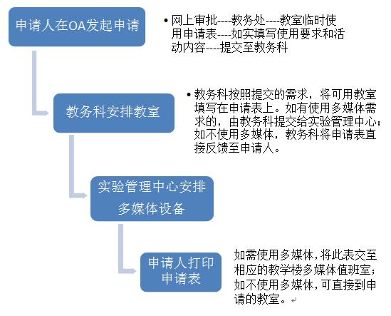 为提高办事效率,节省办理教室借用教师和学生的时间,经教务处、实验管理中心沟通,现在学校OA系统里新增了教室临时活动申请流程,具体如下: