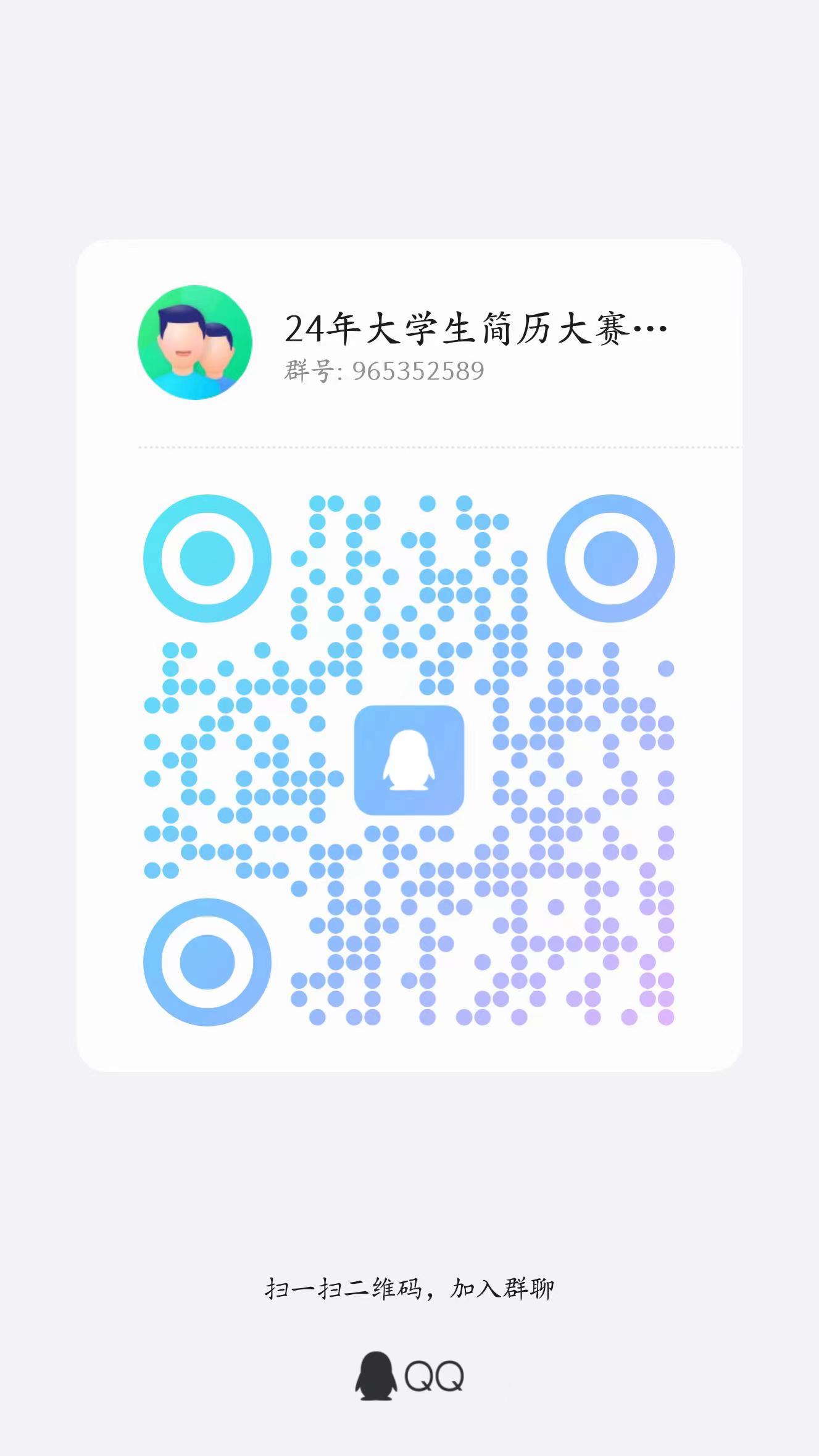 (五)请各学院、书院指定1名老师专门负责本院大赛的组织协调等工作,并加入简历大赛QQ群,未尽事宜和大赛的相关消息在群里进一步通知。