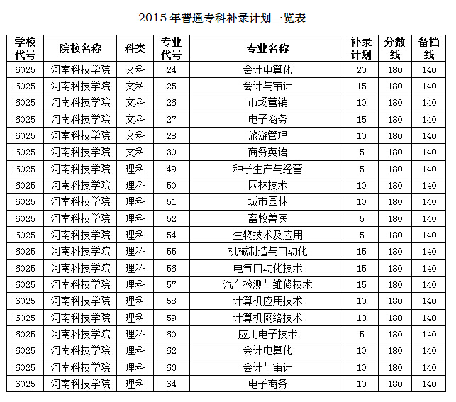 根据河南省招办规定,各个批次的补录分数线仍执行集中录取时的分数线或备档分数线(详见附表)。