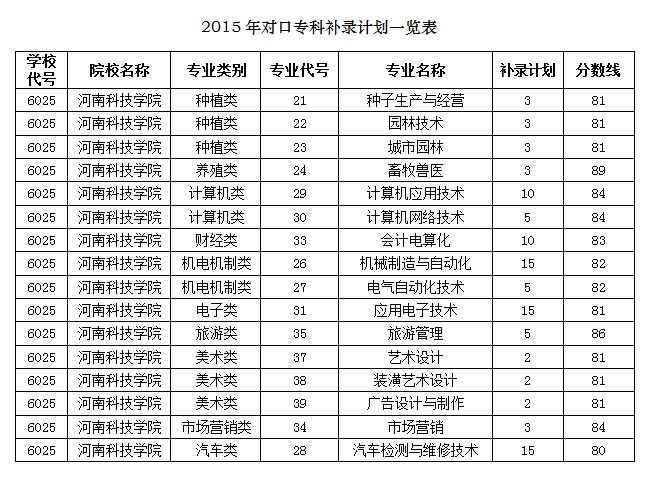 根据教育部和我省有关文件精神,我校今年继续参加全省专科补录。