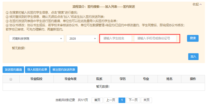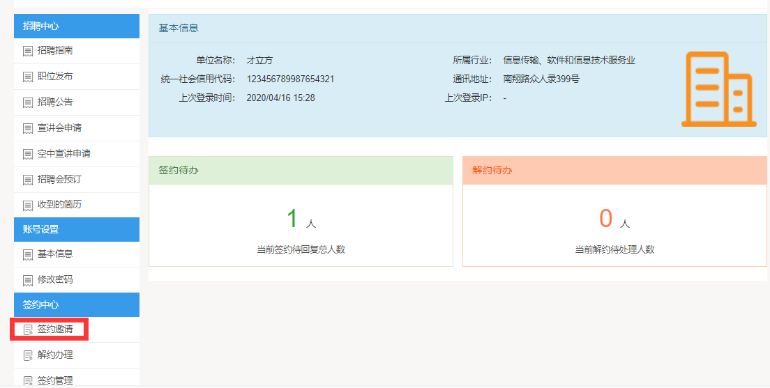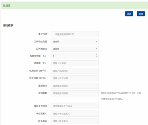 用人单位发送签约: