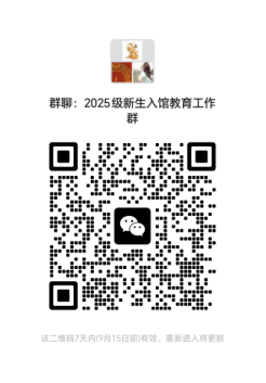 新生入馆教育是入学教育的重要环节,专题培训须全员参加,入馆参观可根据实际情况有序预约。请各学院高度重视并积极组织新生参与,请各学院负责此项工作的老师扫码加入工作群,便于后续工作安排。