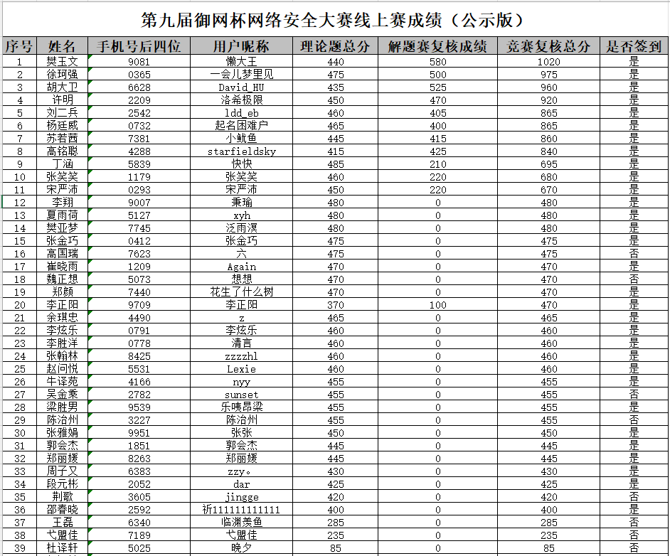 2025年5月11日,第九届御网杯网络安全大赛线上赛已圆满结束。根据赛事组委会《关于发布第九届御网杯网络安全大赛线上赛成绩的相关说明》通知,现公示我校参赛选手成绩(详情见附件)。
