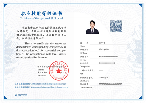 此证书表明持证人已经通过相关课程的培训考核,具备相应的专业知识技能,可作为能力评价、考核、聘用和任职的参考。证书查询:技能人才评价证书全国联网。