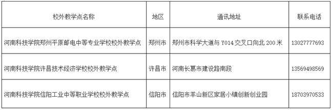 河南科技学院2024年高等学历继续教育招生工作由河南科技学院和2024年在教育部备案的三个校外教学点负责。除此以外,未委托任何中介机构或个人代理招生工作,不接受中介机构生源。2024年备案的校外教学点如下: