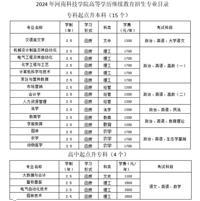 报名手续及时间以2024年河南省教育考试院公布为准。河南科技学院继续教育学院招生咨询电话0373-3040230/3040135,电子邮箱:jxjyxy#hist.edu.cn(发送时将“#”替换为“@”)。