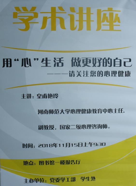 皇甫艳玲,河南师范大学心理健康教育中心主任,副教授,国家二级心理咨询师。30年丰富的学生工作实践中,对心理疏导、公共课教学等高校大学生心理健康教育的基础性工作情有独钟。多次走进学校、银行、企事业单位进行心理健康教育的普及性工作。曾荣获河南省高校首届德育精品课大赛一等奖第一名、河南省高校德育工作先进个人、河南省首届大美学工“十佳先进”个人等称号。