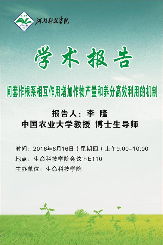 李隆博士,中国农业大学教授,博士生导师。一直从事间套作体系资源高效利用的机制及长期效应的研究工作。先后主持多项国家自然科学基金资助项目、国家重大基础研究(973)项目课题、和国家科技支撑计划项目课题等多项国家级课题,曾主持中德和欧盟等国际合作项目。获得省部级科技奖励6项。在包括《美国科学院院刊》(PNAS),Oecologia, Field Crops Research, Plant and Soil, NewPhytologist, Annals of Botany, Agriculture, Ecosystems and Environment等国际知名刊物上发表间套作提高土壤养分资源利用效率研究文章50多篇。出版专著《间套作体系豆科作物固氮生态学原理与应用》。发表的文章在国际被引用2000多次。最近,李隆课题组进一步揭示了植物之间通过地下部根系分泌物作为信号,强化结瘤和固氮,进而实现植物种间的互利和互惠作用的新机制。2016年6月7日《美国科学院院刊(PNAS)》发表了他们的最新进展。