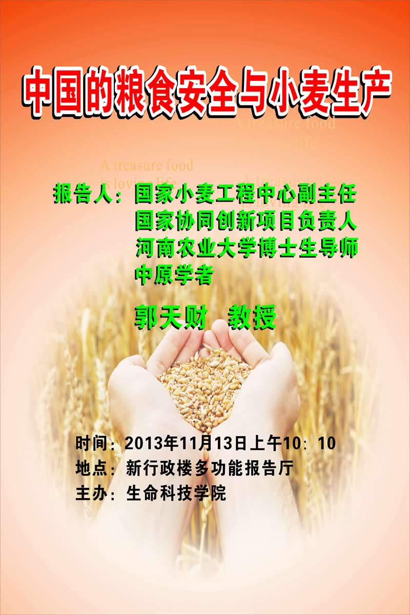 郭天财,国家小麦工程技术中心副主任,教授,博士生导师。国家协同创新项目负责人、享受国务院政府特殊津贴专家、河南省省管优秀专家、国家北方小麦产业技术体系岗位科学家、兼农业部小麦专家指导组副组长、河南省小麦专家指导组组长等职。