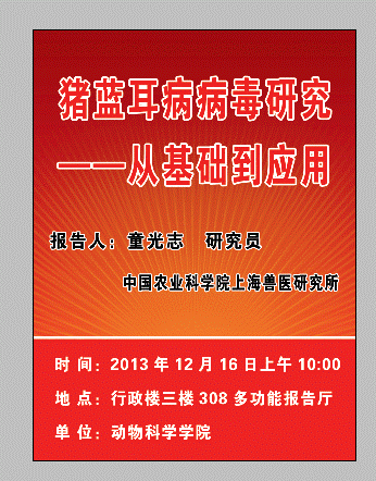 报告题目:猪蓝耳病病毒研究——从基础到应用