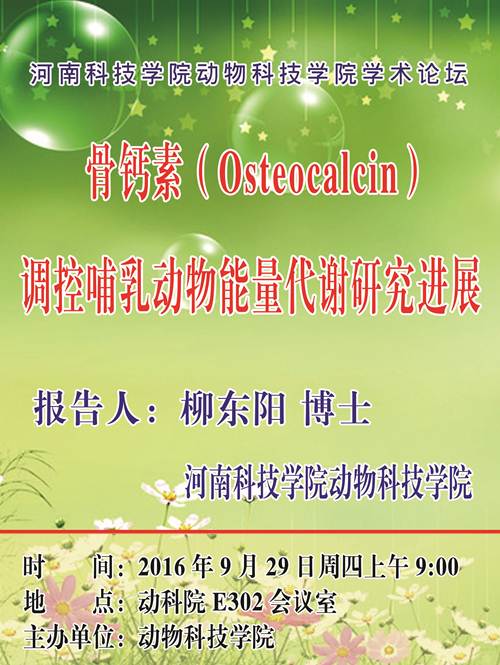 报告题目:骨钙素(Osteocalcin)调控哺乳动物能量代谢研究进展