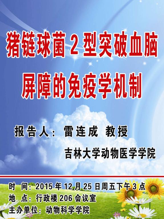 雷连成,男,1968年7月生,博士,微生物学与免疫学教授,博士生导师,吉林大学动物医学学院微生物学与免疫学学科负责人。现任吉林大学动物医学院副院长、吉林大学白求恩医学院双聘教授、吉林省微生物学会常务理事、吉林省微生物学会兽医微生物专业委员会主任委员、中国兽医微生物专业委员会主任委员等。