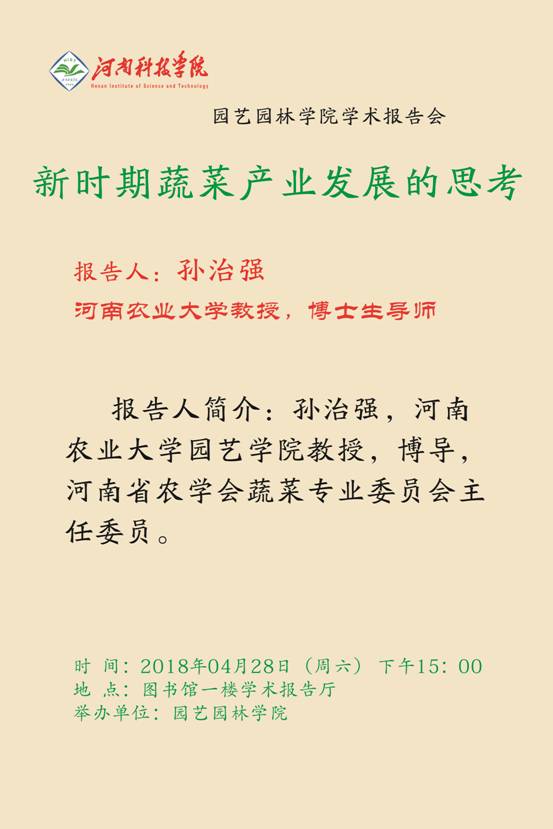 报告人简介:孙治强,河南农业大学园艺学院教授,博导,河南省农学会蔬菜专业委员会主任委员。