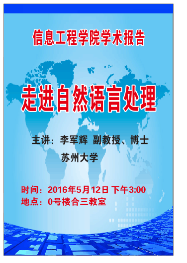 报告人简介: 李军辉,2010年7月毕业于苏州大学计算机科学与技术学院, 获博士学位。 2011年2月-2012年7月在爱尔兰都柏林城市大学 (Dublin City University) CNGL中心做博士后研究, 2012年8月-2014年7月在马里兰大学(University of Maryland, College Park) UMIACS中心做博士后研究。 2014年8月任职苏州大学计算机科学与技术学院。 多年来一直致力于自然语言处理和文本分析处理方面的研究与开发工作, 在自然语言处理顶级会议ACL/EMNLP/COLING/NAACL上发表论文多篇, 目前主持国家自然科学青年基金1项。 研究方向: 自然语言理解, 机器翻译等。 个人主页: http://nlp.suda.edu.cn/~jhli