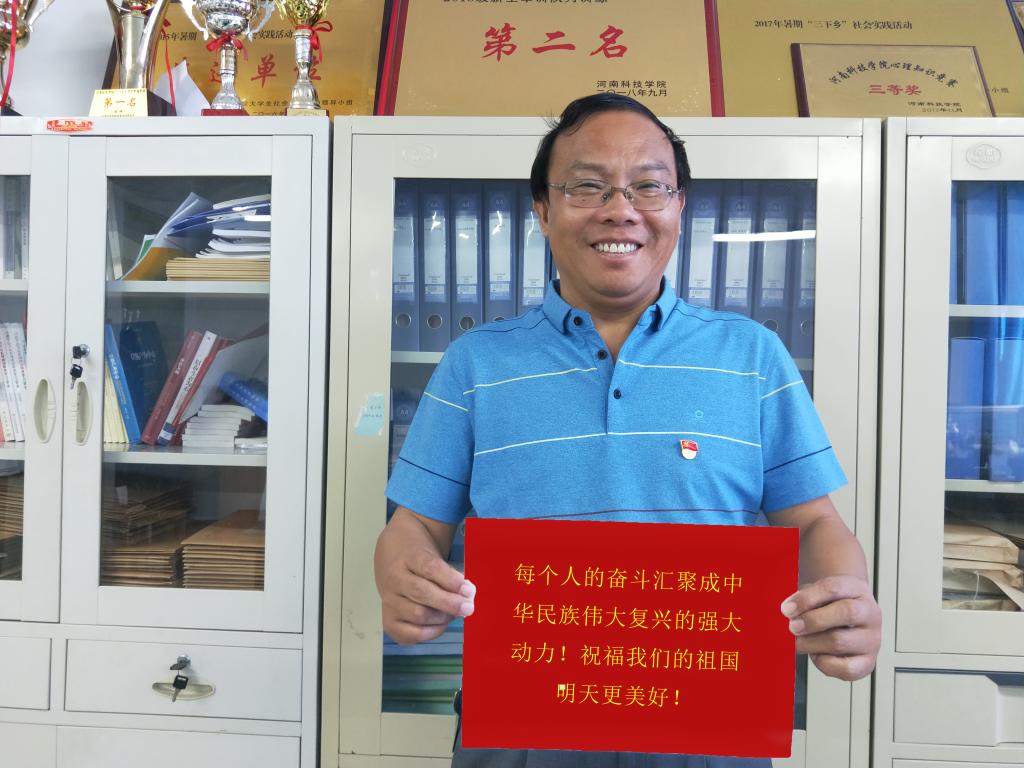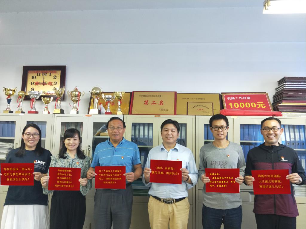 为庆祝中华人民共和国成立69周年,进一步增强基层党组织的凝聚力和战斗力,信息工程学院教工第六党支部于9月29日开展喜迎国庆“祝福祖国生日”主题党日活动。学院党委书记郎瑞红、党委副书记张建设、团委书记栗宁以及辅导员苏东阳、吴昊、袁家祺参与本次主题党日活动。