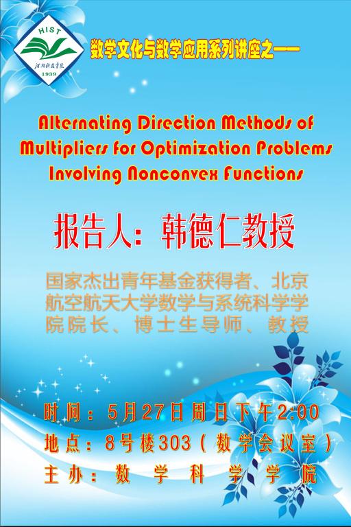 报告题目:Alternating Direction Methods of Multipliers for Optimization Problems Involving Nonconvex Functions