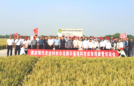 5月18日上午,农学院小麦中心在国家现代农业科技示范展示基地举行成果观摩培训会。新乡市四区八县农业农村局、农技站、种子站、植保站、种粮大户代表,以及我校科技处、小麦中心负责人和团队成员等80余人参加了本次技术培训会。