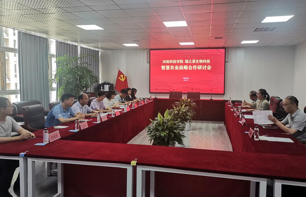 王新瑞介绍了瑞之恩生物科技有限公司的基本情况、乡村振兴产业园的建设情况和发展规划,特别是公司建设的智慧农业板块专注从源头上保证公司产品质量,希望在农产品生产、深加工及销售等方面与农学院开展密切合作,推动双方实现互利共赢。