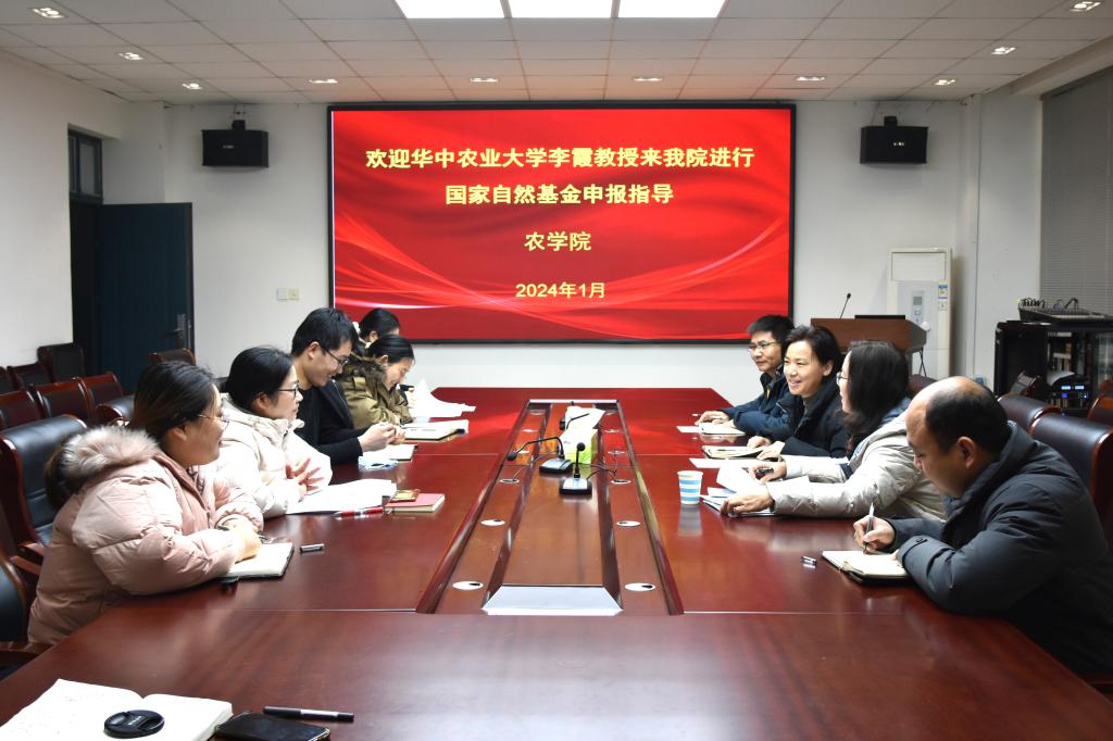 1月31日,华中农业大学李霞教授应邀参加我院2024年国家自然科学基金申报论证会,会议在学院708会议室进行,执行院长胡海燕和学院相关基金申报教师参加了交流会,会议由农学院副院长陈二永主持。