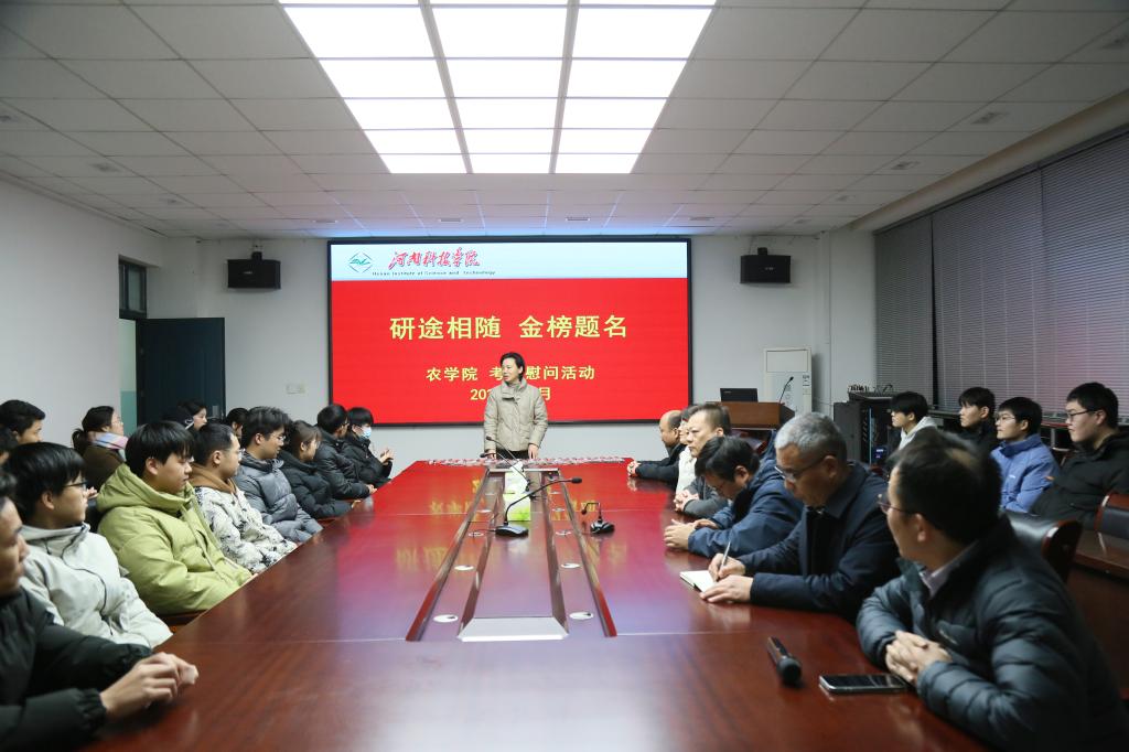 为了帮助考研学子们坚定信心,调整状态,农学院于12月11日下午在12#708会议室开展了2025届考研学生慰问活动。农学院党政领导班子成员、全体辅导员和25届考研学生代表60余人出席会议。
