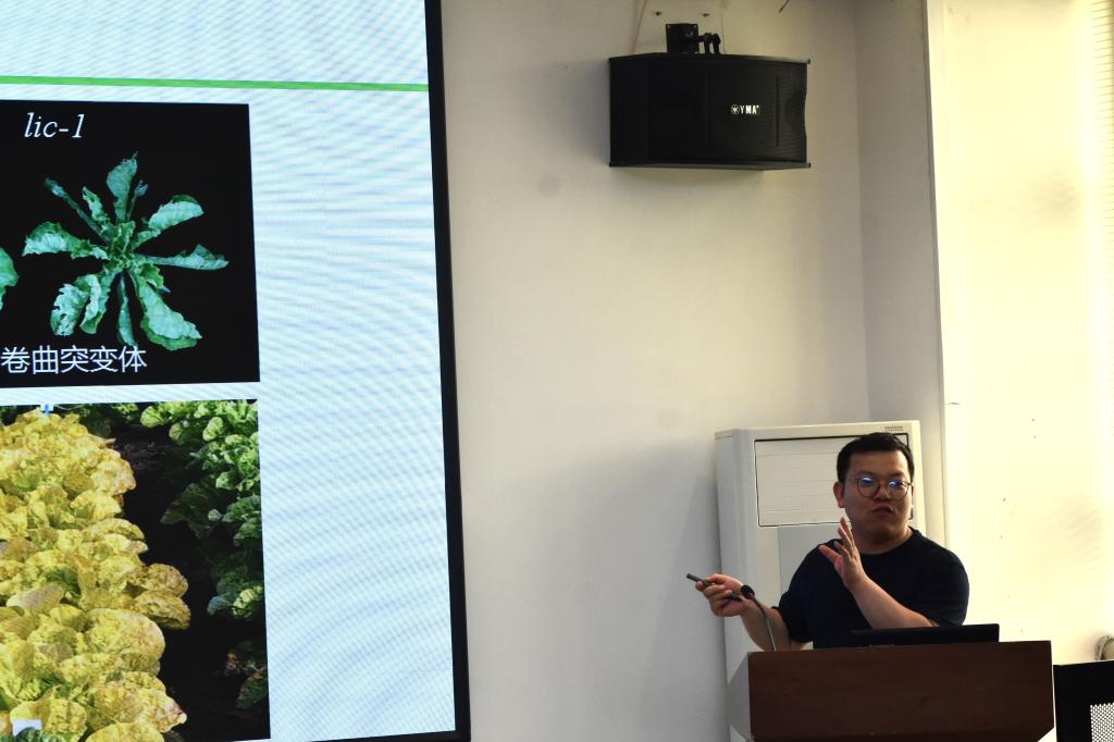 在报告中,马卫教授分享了其所在的河北农业大学蔬菜遗传育种团队在大白菜叶球形成的表型组学平台构建、突变体库数据库建立、叶球及叶片颜色发育变异突变体候选基因定位及功能解析等方面取得的最新研究进展和成果。大白菜属十字花科芸薹属,是我国的重要蔬菜作物之一。大白菜主要以叶片为食用器官,研究叶片发育机制对改良品种和定向育种具有重要意义。报告结束后,马卫教授就参会师生关心的问题进行了互动探讨和深入交流,并对学院年轻教师的科研工作进行指导,提出了宝贵的建议。