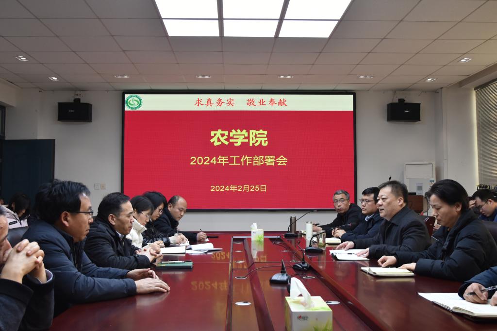 2月25日下午,农学院在708会议室召开2024年工作部署会,学院全体教职工参加会议。会议由院党委副书记杨文平主持。